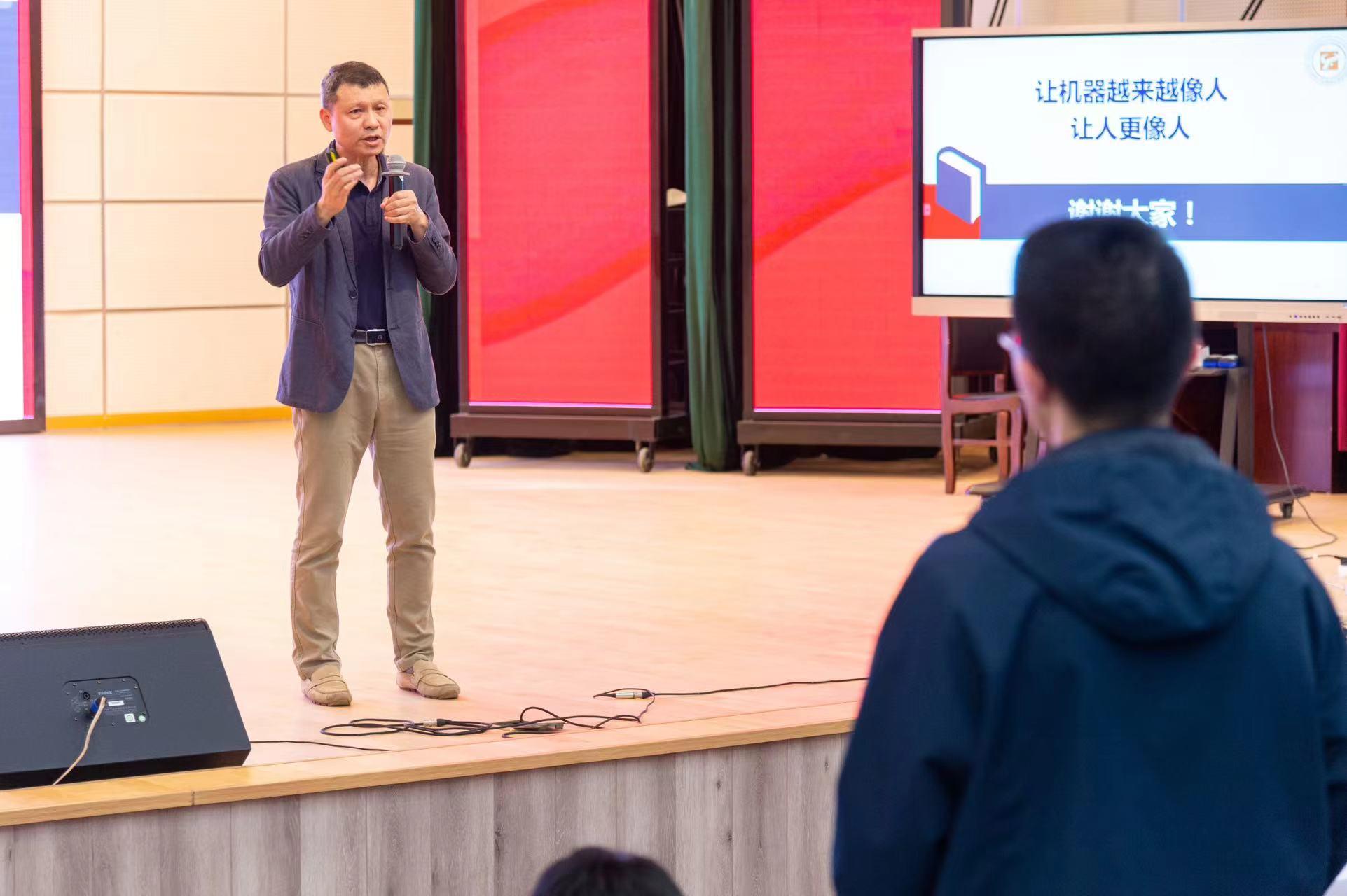 在互动提问环节,现场同学们踊跃发言,对跨学科学习的意义、机器与人之间的关系、如何更好地利用人工智能等疑惑,张文宇一一为同学们解答。他鼓励当代青年学子应该成为“全能型人才”,注重跨学科知识的学习,不仅仅凭借兴趣,而是以对社会发展需要和能实现自己人生价值的角度选择专业和职业方向。人工智能的发展势不可挡,因此我们要比机器更像人,“鹤立机群”,成为更好的自己,从而创造更好的世界。