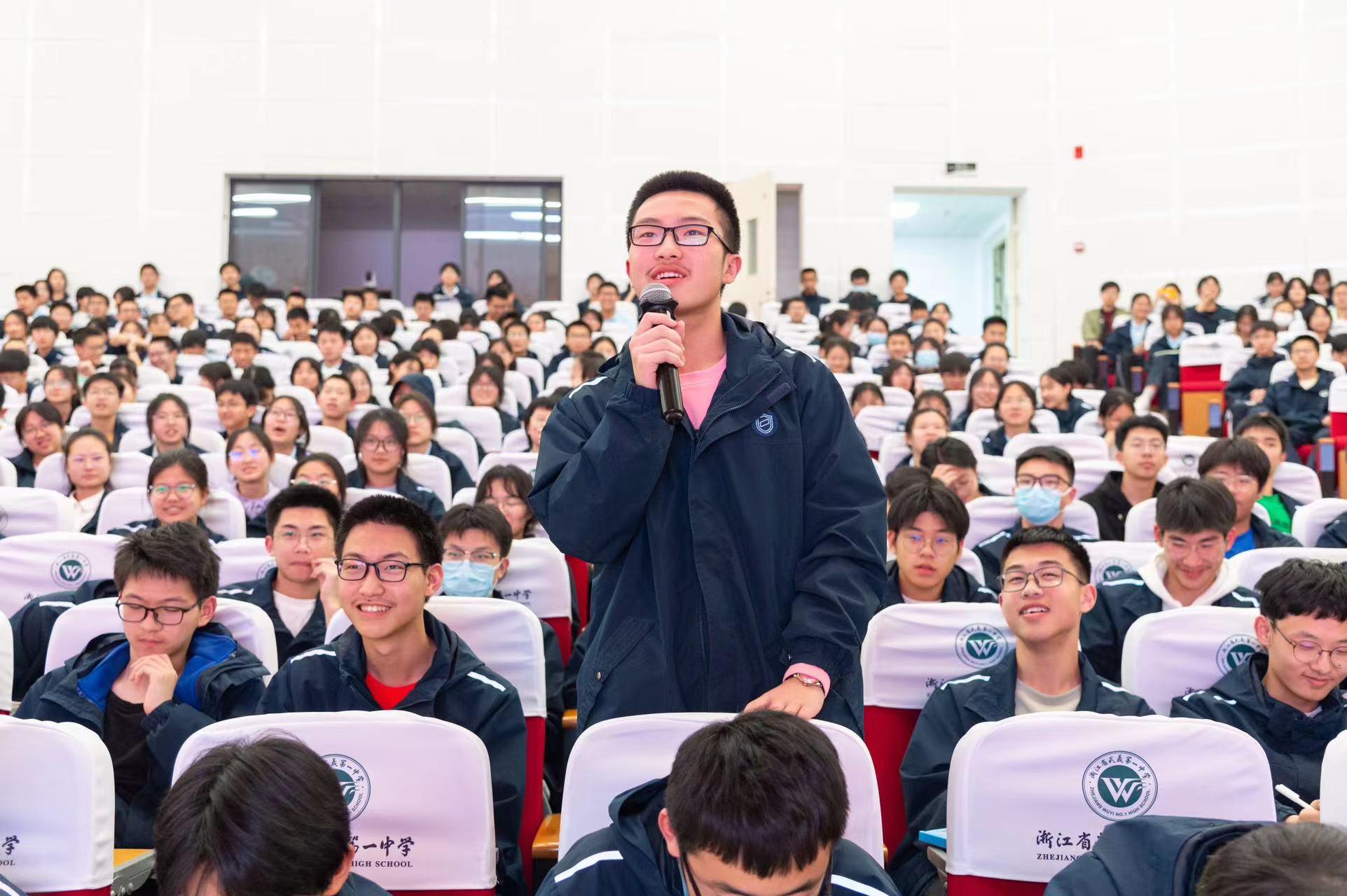 院长张文宇教授应邀前往武义一中(浙江省一级重点中学)开展“教授博士进中学”活动,并结合当前热点,为高一年级学生作了“从AlphaGo到GPT-4: AI思维与智慧学习”的生涯规划讲座,近600人的报告厅座无虚席,现场笑声、欢呼声不断。