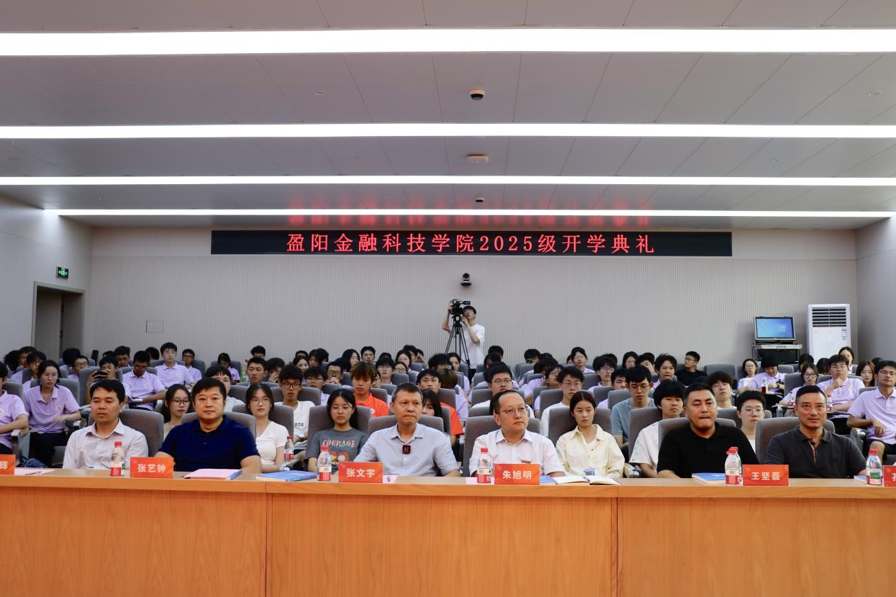 2025级新生开学典礼隆重举行。盈阳金融科技学院理事会理事、楼佳雏鹰奖学金发起人王坚磊,长城证券财富管理总部副总经理张艺钟,长城证券财富管理总部投教负责人邓燕,院党委书记朱旭明,院长张文宇,副院长傅俊辉、孔繁岗,班主任老师,学院教师、学生代表,2025级全体新生出席开学典礼。典礼由学院党委副书记陈思佳主持。