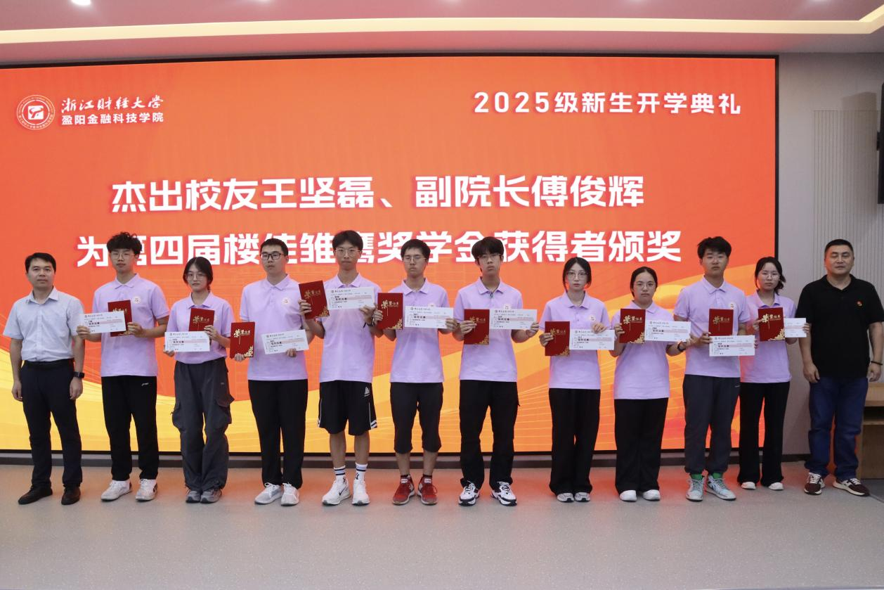 杰出校友王坚磊、副院长傅俊辉为第四届楼佳雏鹰奖学金获得者颁奖