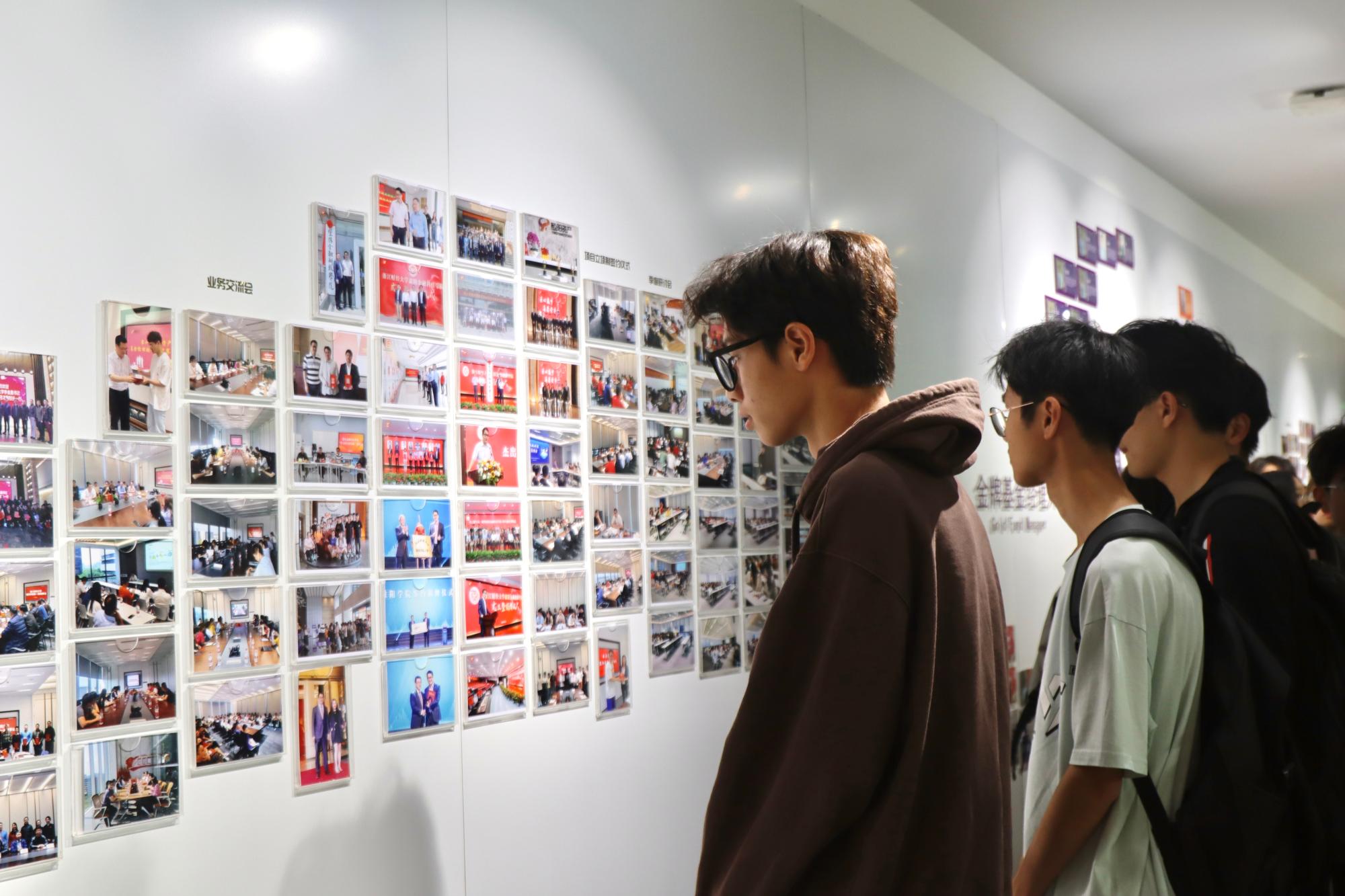 同学们在公司历程墙和荣誉墙前见证了公司的发展历史,在照片墙前充分感受极富活力的成人影视片。